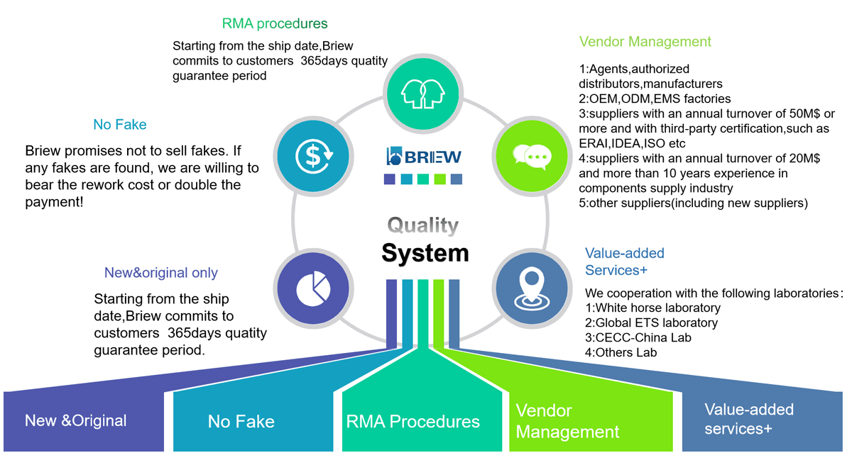 Briew Co.,Ltd have over 15 years of business experience,We can provide one-stop services, our products are widely used in Aerospace and Defense,Automotive, Communications, Personal electronics, Healthcare,Industrial Automation, Instrumentation & Measurement, Security & Surveillance, Internet of Things(loT),RF Solution, Precision Sensor Interfaces, Lighting Solutions, and so on;We eagerly to listen and know customers' challenges and expectations, and then tailor our plans to ensure seamless connection and perfect execution.Shortage parts,EOL parts,Substitute parts and prepare parts,All of these servicesare designed to protect your product life cycle and reduce your total purchasing costs.Our products include IC,Capacitor, Resistor, Inductor, Connector, Crystal Oscillator, LED, Switch,other Precision components and so on.